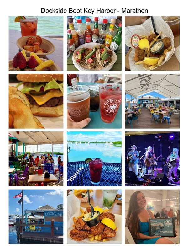 Dockside Boot Key Harbor is located on the water at 35 Sombrero Blvd in Marathon. Visit their website to see their current menu options.